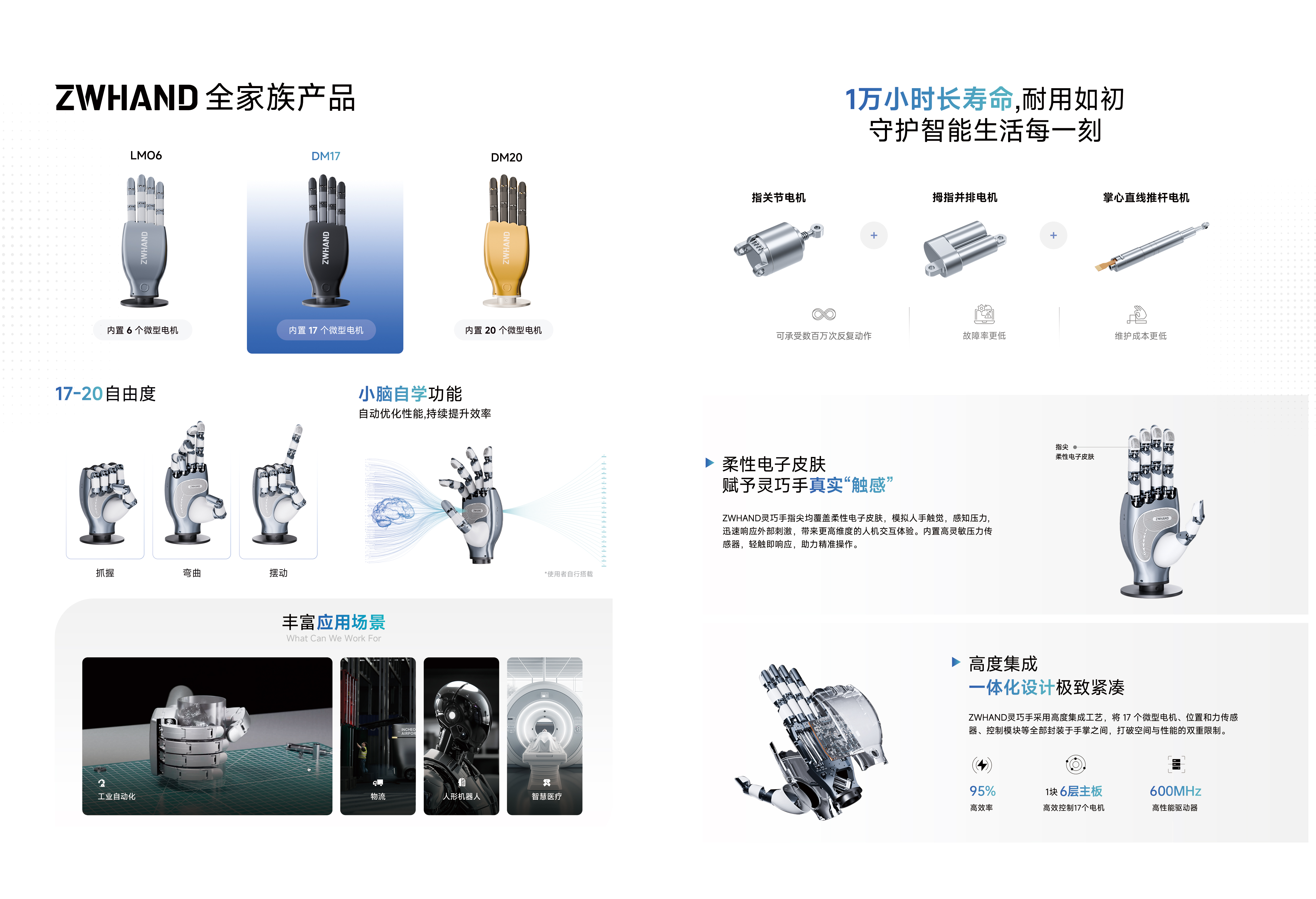 2024年11月,兆威全球首發ZWHAND靈巧手,采用自主創新的指關節獨立驅動技術,高度集成工藝,將17個微型電機、位置和力傳感器、控制模塊等全部封裝于手掌之間,打破空間與性能的雙重限制。