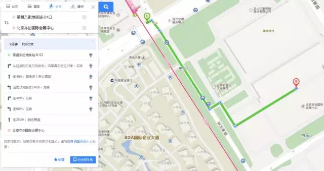 選擇地鐵出行的朋友,請搭乘地鐵5號線或10號線至宋家莊站下車,換成地鐵亦莊線至榮昌東街(B2口出),需時約20分鐘。下地鐵后: